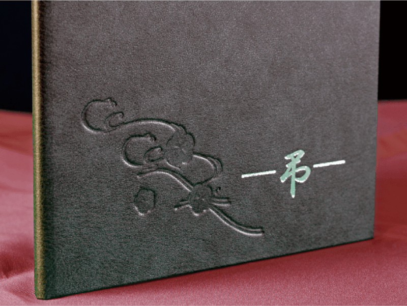 上質なレザー仕様にシルバーの箔押しを施した、品格あるデザイン。